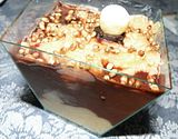 Una volta raffreddate incorporate ad ogni porzione di crema 100 gr di mascarpone. Profumate quella gialla con 2 cucchiai di rhum e quella scura con 2 cucchiai di brandy. Suddividete ora le due creme in 4 coppete individuali procedento a cucchiaiate alterne per ottenere un effetto marmorizzato. Metterle ora in frigo per un paio d'ore.
