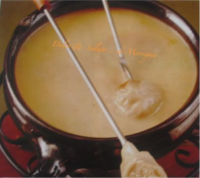Unite la noce moscata e portate in tavola ponendo il recipiente sull'apposito fornellino a spirito e accompagnandola con dadini di pane.