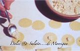 E' importante evitare di infarinare la sfoglia al termine della sua preparazione, altrimenti non si attacca quando viene ripiegata per racchiudere il ripieno.Ponete al centro di ogni dischetto di pasta un po’ di ripieno prima preparato,