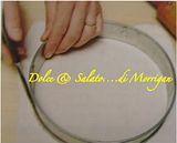 Inumidite con un po' di acqua fredda la placca da forno. Sulla spianatoia, leggermente infarinata stendete la pasta con il matterello in modo da ottenere una larga sfoglia di un centimetro circa di spessore. Prendete ora un anello da tortiera e ponetelo sulla sfoglia e ritagliate tutto intorno con la punta di un coltellino molto affilato. Ripetete l'operazione in un altro punto della sfoglia, in modo da ricavare 2 dischi, 1 dei quali verrà posto sulla placca da forno.